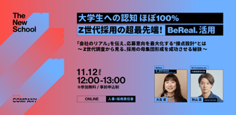 ◤The New School◢ 11/12(水)BeReal.との共催ウェビナー開催。大学生認知ほぼ100%、Z世代採用の超最先端!